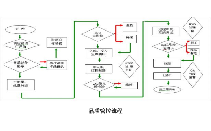 公司的质量管理体系:通过了ISO9001:2015/GB/T19001标准质量管理体系认证;在全员品质理念的基础上形成了自己的品质管控体系与显示屏生产工艺管控流程,配备了高低温测试柜、盐雾测试机、光谱分析仪、淋水试验室、AOI测试仪,光枪、模拟运输震动测试等专用测试设备,检测仪器定时送技术监督局校验;