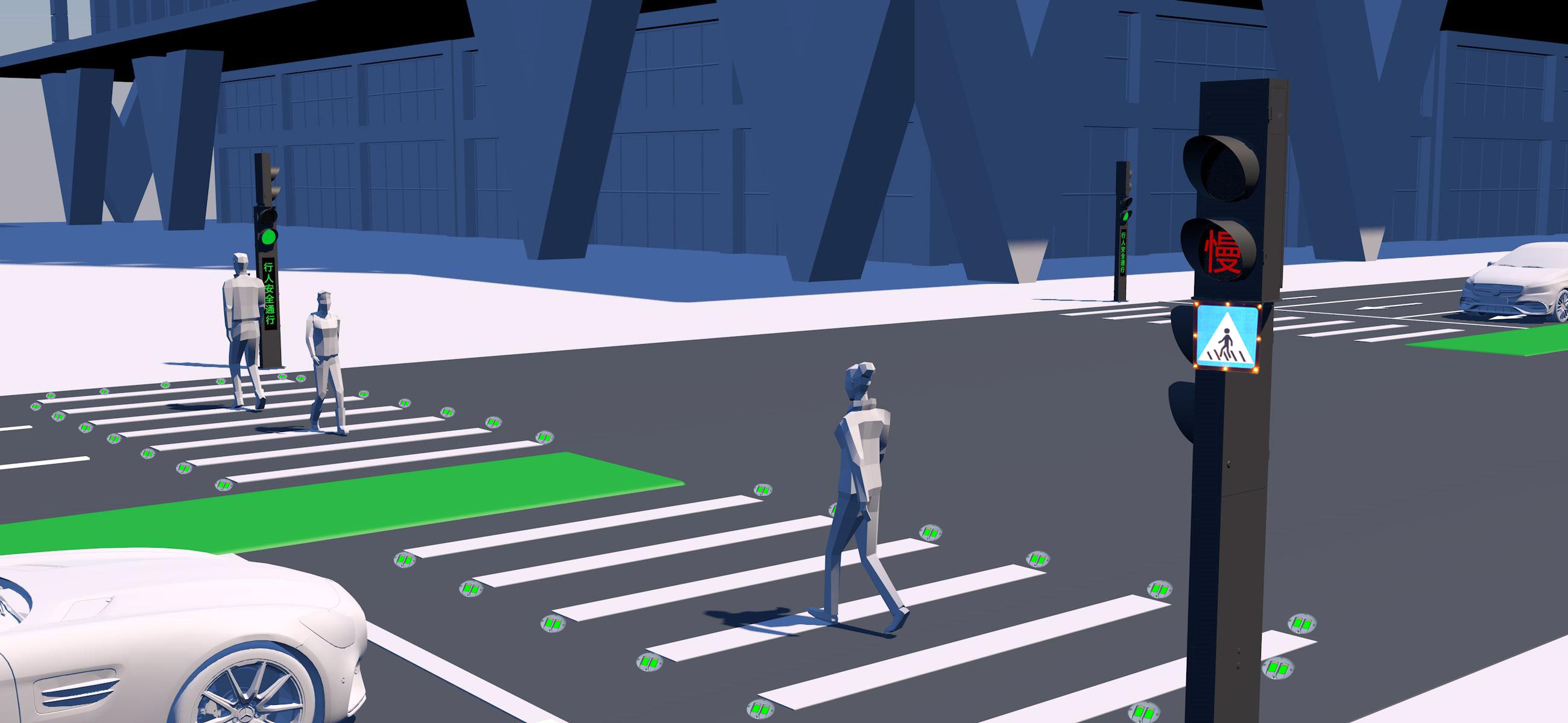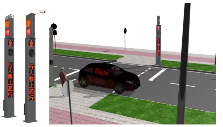 传统的交通环境简单或者车流量、人流量比较少的路口无信号灯或多款信号灯组合安装,采用本方案安装方便即可达到控制交通的目的,提升了行人过街路口的安全性,又大大降低了路口的交通控制成本。在非灯控路口,通过检测器智能检测过街行人、非机动车辆,控制信号灯的状态,从而提醒驾驶员礼让行人,行人过马路时注意过往车辆。过街请求方式:摄像机识别控制、红外感应控制、机械复位按钮控制。发光标牌:行人过街发光标牌,闪烁提示车辆前方是行人过街路口,主动让行。