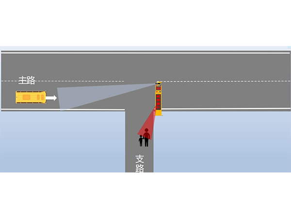 1、无灯控路口处,安装会车预警一体机,当主路来车时通过远距离雷达发现来 车的速度和方向,立即通过声光电技术 (LED屏幕、高音喇叭、爆闪灯) 警示支路行人和车辆达到预警、预防的安全通行效果,有效避免交通事故
